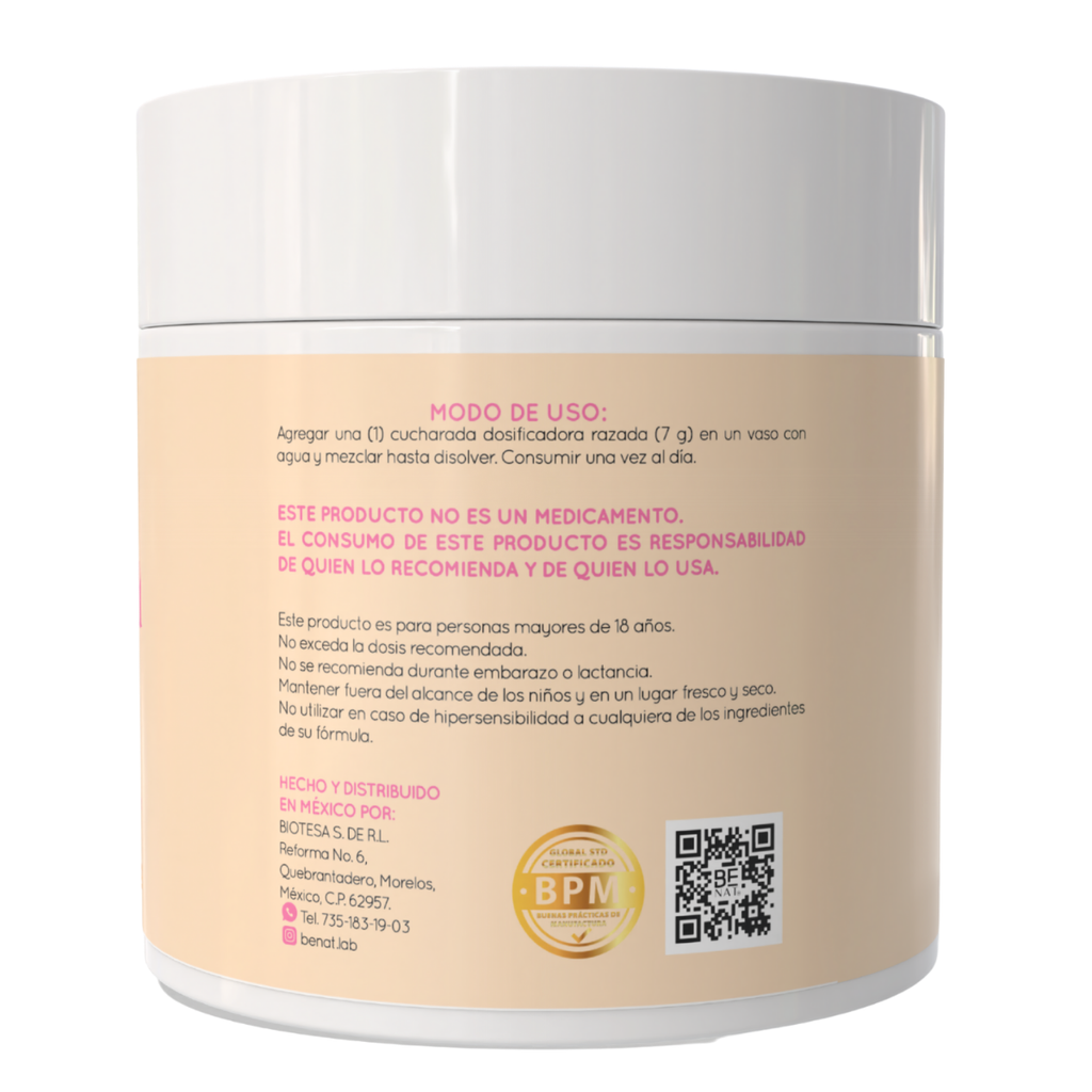 Creatina Diseñada para mujeres que realizan actividad física, elaborada a base de Creatina Monohidrata de alta pureza, Beta- Alanina, Minerales esenciales y Antioxidantes para una máxima recuperación.