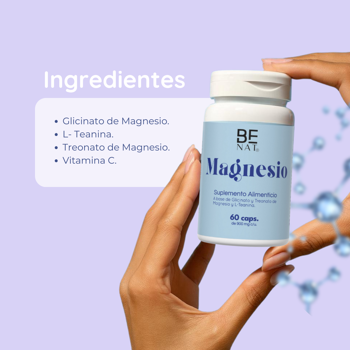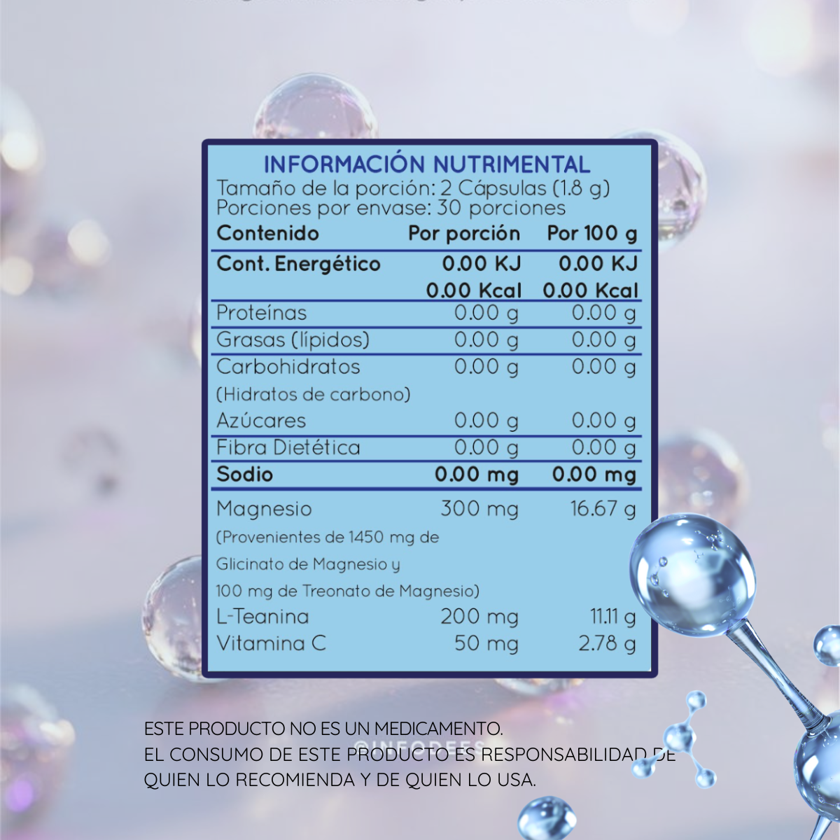 INGREDIENTES: Glicinato de Magnesio, L- Teanina, Treonato de Magnesio y Vitamina C.
